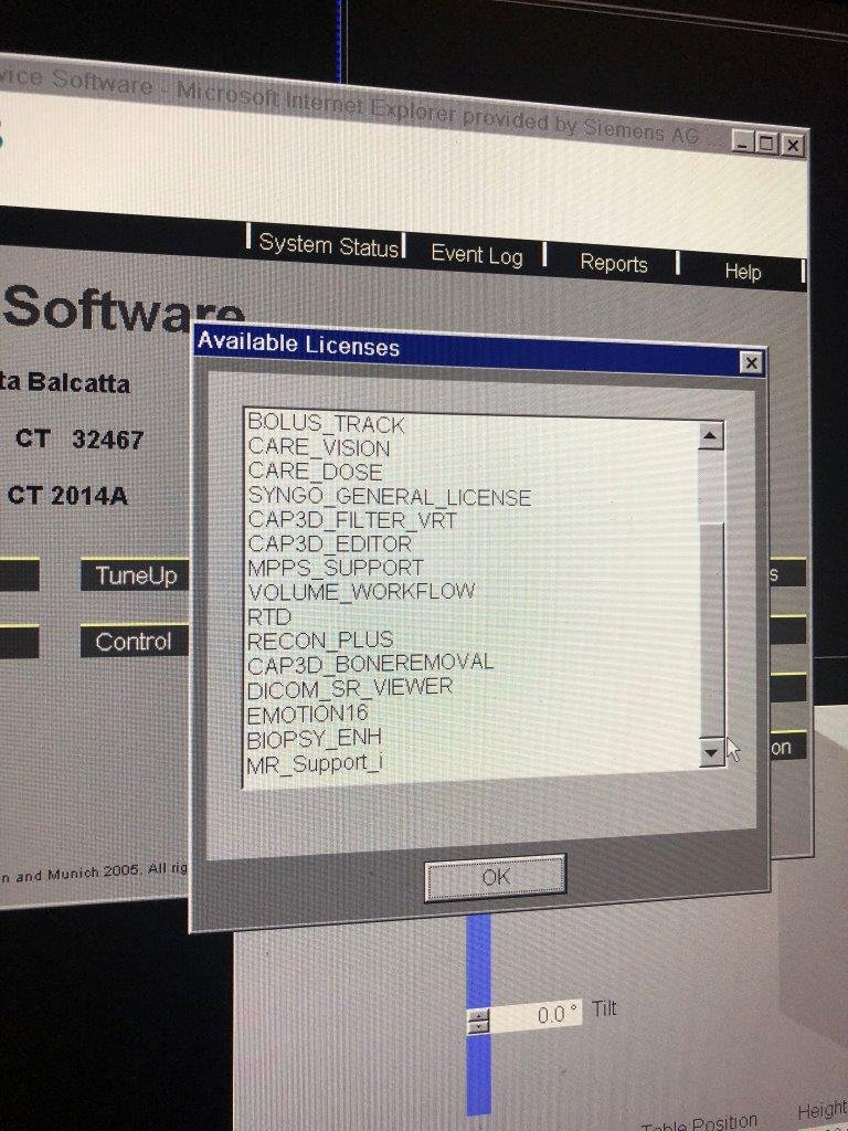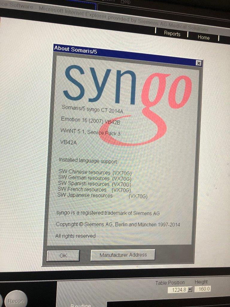 Tomógrafo Siemens Emotion de 16 cortes con tubo y cuidados casi nuevos Dosis Fabricado:Mayo de 2009 Tipo de tubo:MCT_172(S/N:814461392) Número de Escaneados:3, 666 sólo Tubo Escaneado segundo:17.879,5 Tubo cambiado: Noviembre 2018) IRS Torre 12G ICS Torre 11B Nuestra Ref. EX 984