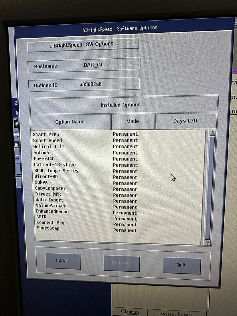 Opciones: Preparación inteligente, Velocidad inteligente, Inclinación helicoidal, AutomA, Power440, Paciente de 16 cortes, Serie de 3000 imágenes, Direct-3D, 90 kVA, CopyComposer, Direct-MPR, Exportación de datos, VolumeViewer, Neurofilter, EnhancedRecon, ASIR AutoBone, ConnectPro