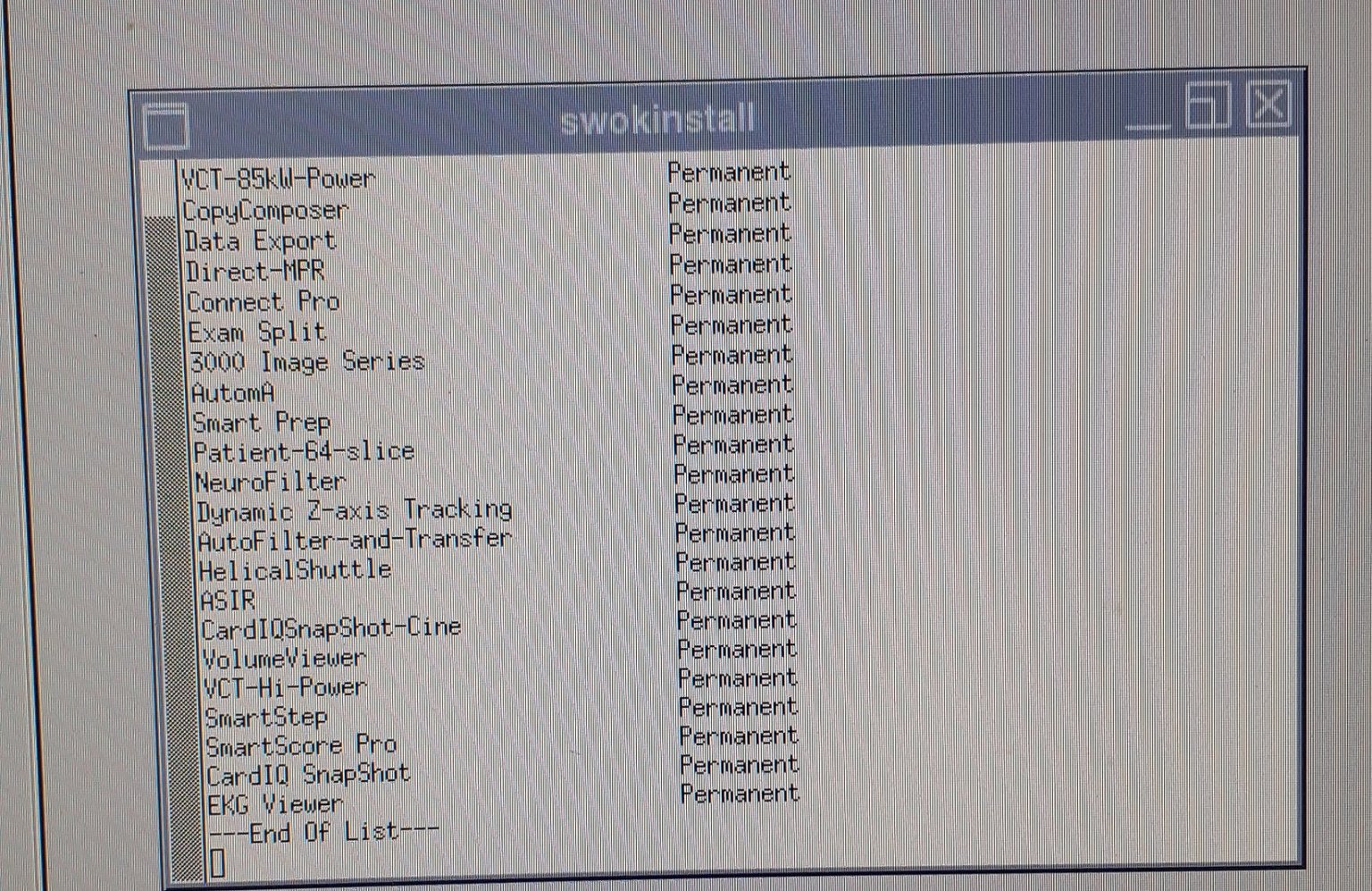 Escáner de TC GE VCT de 64 cortes Fabricado: 2006 Ubicación actual : EE.UU. (EXU12404571) Tipo de tubo: Tubo Hércules Fecha de instalación: Enero de 2018 Tubo mAs: 43 millones de mAs, Opciones: VCT-85KW-Power, CopyComposer, DataExport, Direct-MPR, Connect Pro, Exam Split, 3000 Image series, AutomA, Smart Prep, Paciente-64-cortes, NeuroFilter, Eje Z dinámico, Tracking, AutoFilter-and-Transfer, HelicalShuttle, ASIR, CardIQSnapShot-Cine, VolumeViewer, VCT-Hi-Power, SmartPrep, SmartScore-Pro, CardIQ SnapShot, EKG Viewer