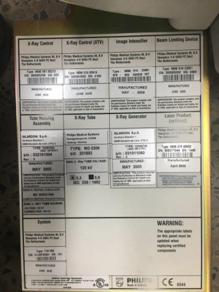 Brazo en C móvil Philips BV Pulsera usado Ubicación actual : Australia (EXA160418) Monitores LCD de 9″ IITV Fabricado: 2005
