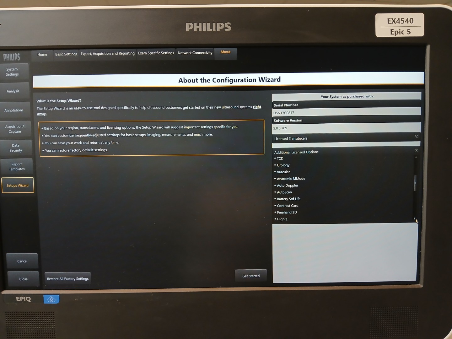 | Installed Options | : | Abdomen, Breast, Fetal Echo, Gyn, Intervention GI, Musculoskeletal, OB, Pediatric GI, Small Parts, TCD, Urology, Vascular, Anatomic MMode, AutoScan, Battery Std Life, Contrast card, Freehand 3D, HighQ, MaxVue, MicroFlow, Imaging, MFI HD, Multi Modality Query Retrieve, NetLink Dicom, OmniSphere Connectivity, Panaramic 2D, SmartExam, Stress Protocol, TDI, Ultrasound Query Retrieve, aBiometry Assist, Digital Navigation Link, Needle Visualization, English |