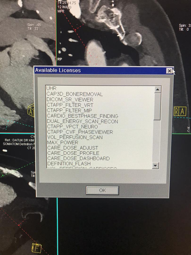 CARDIO_PRO, CARDIO_RETRO, BONLUS_TRACK, CA_SCORE, CARE_DOSE, SYNGO_GENERAL_LICENSE, CAP3D_FILTER_VRT, CAR3D_EDITROE, MPPS_SUPPORT, VOLUME_WORKFLOW, EXTENDED_FOV, CTAPP_MAIN, UHR_03