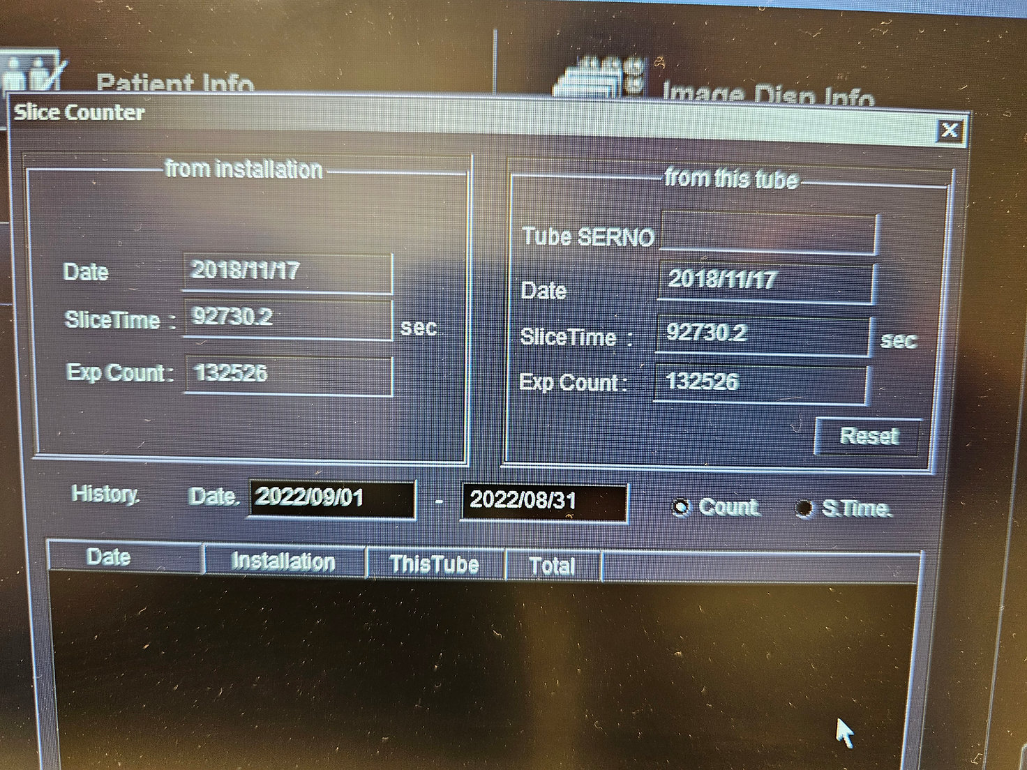 Último cambio de tubo: 17/11/2018