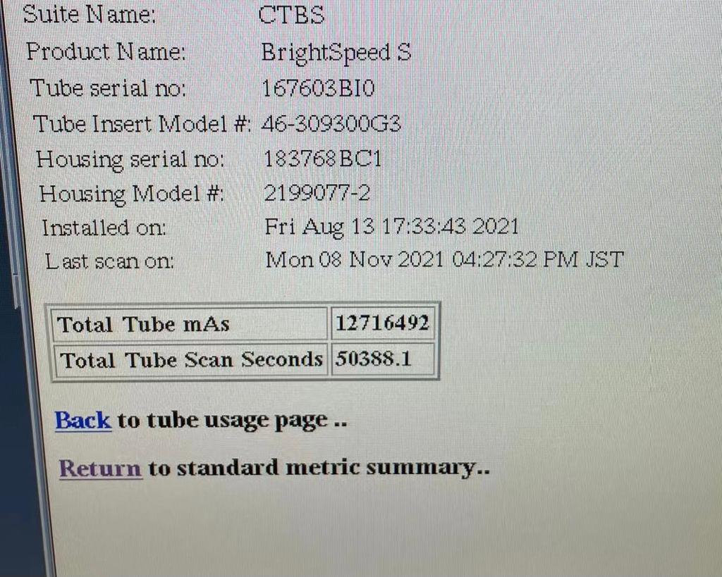 Emplacement actuel : Japon (NEX99) Type de tube : Tube Solarix Remplacé : août 2021 Tube actuel mAs : 13 millions de mAs Options : Smart Prep, Patient-16-Slice, AutomA, Direct-3D, Direct-MPR, Helical Tilt, 3000 Image Series , Exportation de données, CopyComposer, NeuroFilter, VolumeViewer, Helical-120-Sec, Lite-Power350, AutoBone, Recon améliorée, Connect Pro