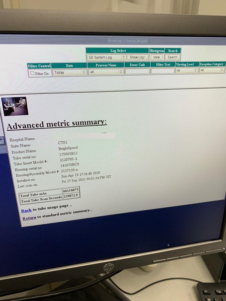 Emplacement actuel : Japon (NEX87) Type de tube : Tube Performix Installé : Avril 2020 Tube mAs : 66 millions de mAs Options : Tuile hélicoïdale, Smart Prep, VolumeViewer, Scan 440 mAs, Grande série d’images, 16 Slilce, SmartSpeed, Direct03D, 90 kva, Direct-MPR, Exportation de données, Copy Composer