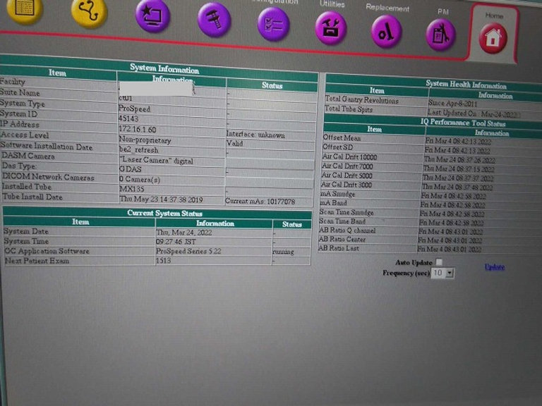 GE Prospeed FII Dual Slice CT Scanner Fabriqué : 2011 Location : Japon (NEX115) Type de tube : MX135 Tube remplacé : Mai 2019 Options : Fast Scan 1.0, Fast Scan 1.5, Helical 60 Max, Raw Data 5000 Max, Thickness 1mm, ImageDisk 100000, VolumeAnalysis2, VolumeRendering2, Navigator2