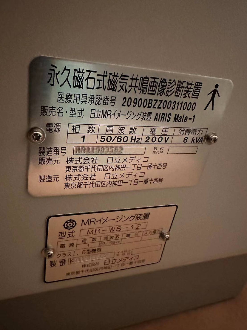 Hitachi Airis Mate 0.2T MRI Location : Japon (NEX189) Version du logiciel : V4.5U Bobines : Bobine du corps, bobine des articulations, bobine de la tête, bobine du genou