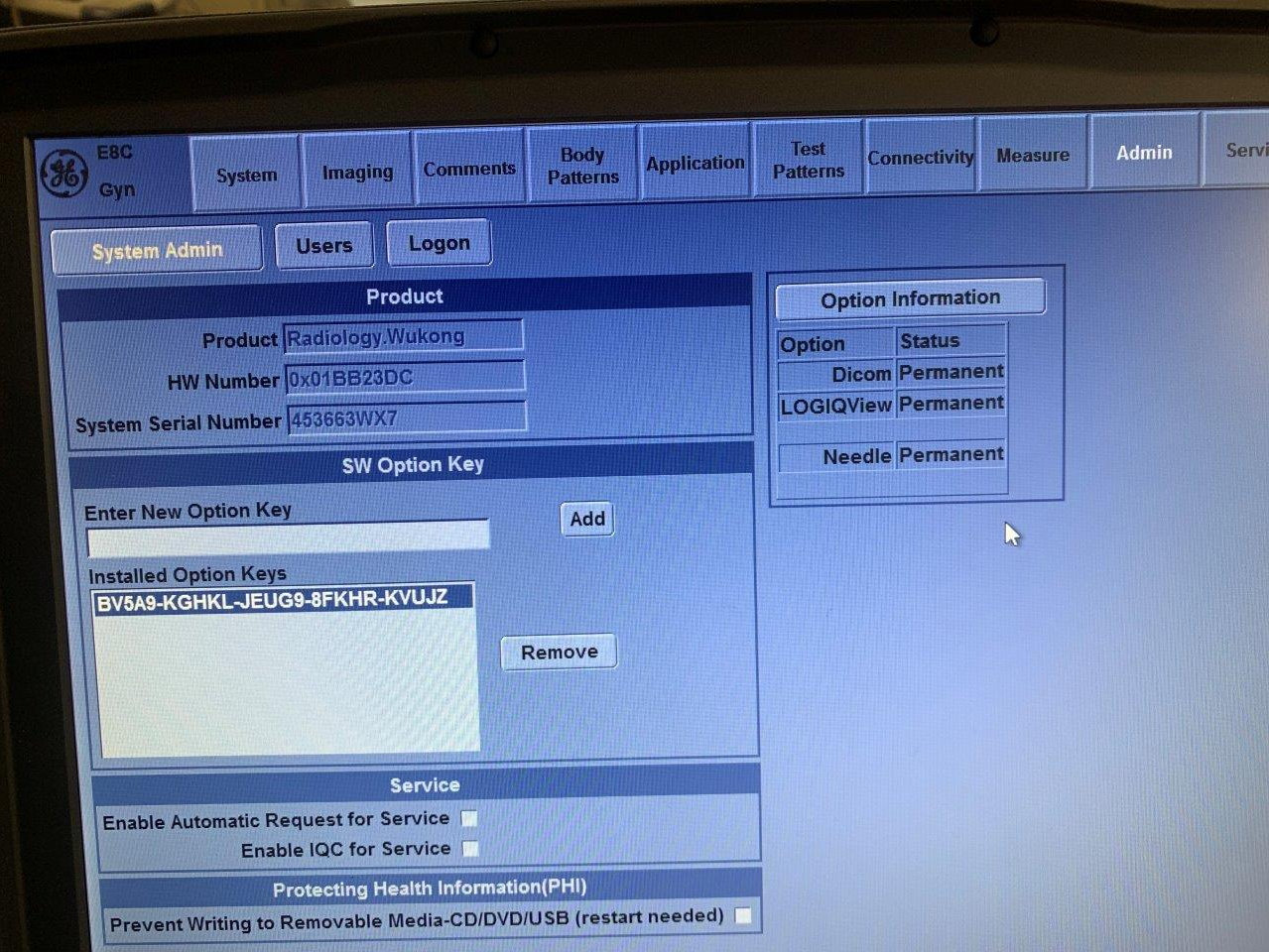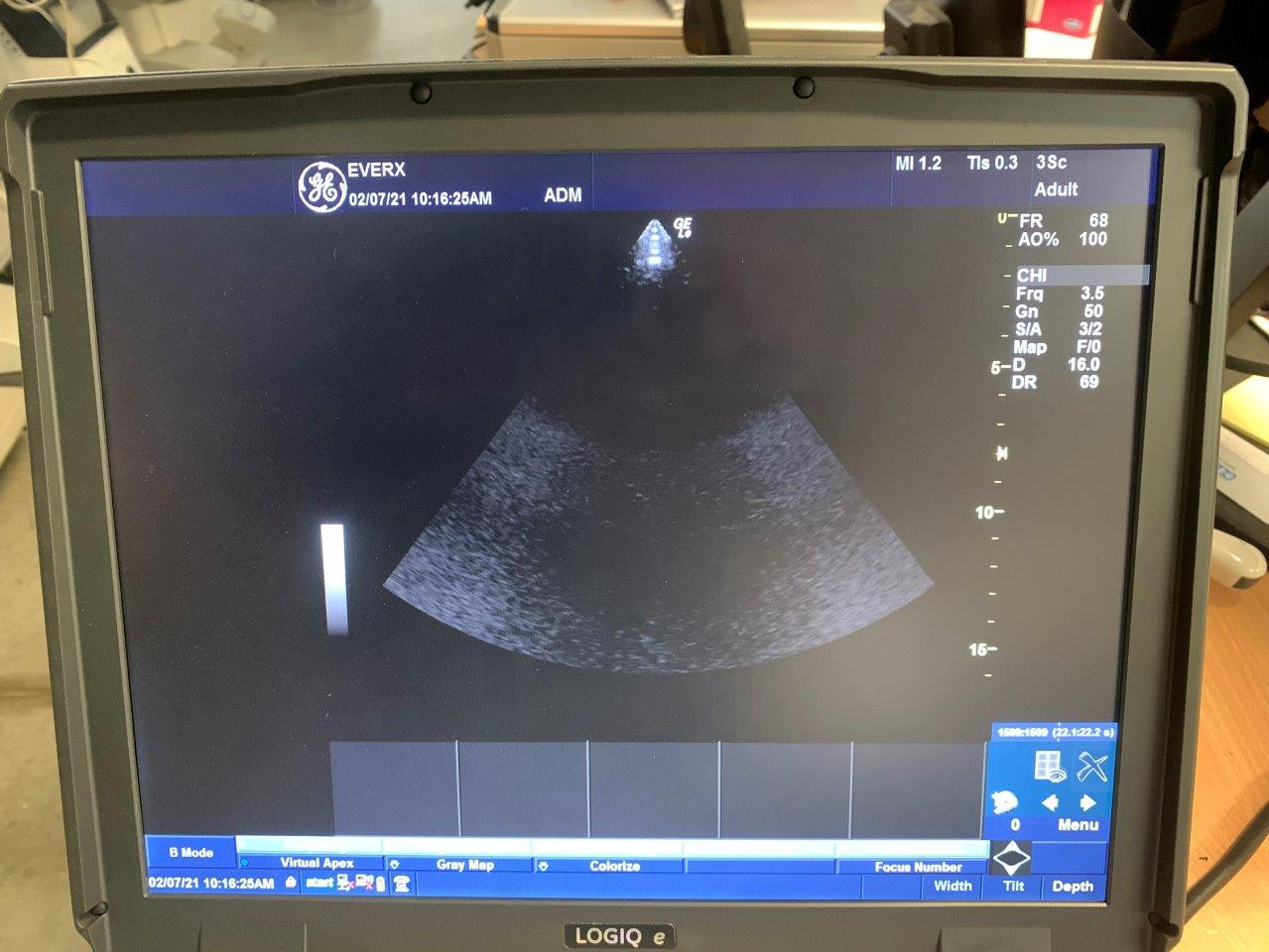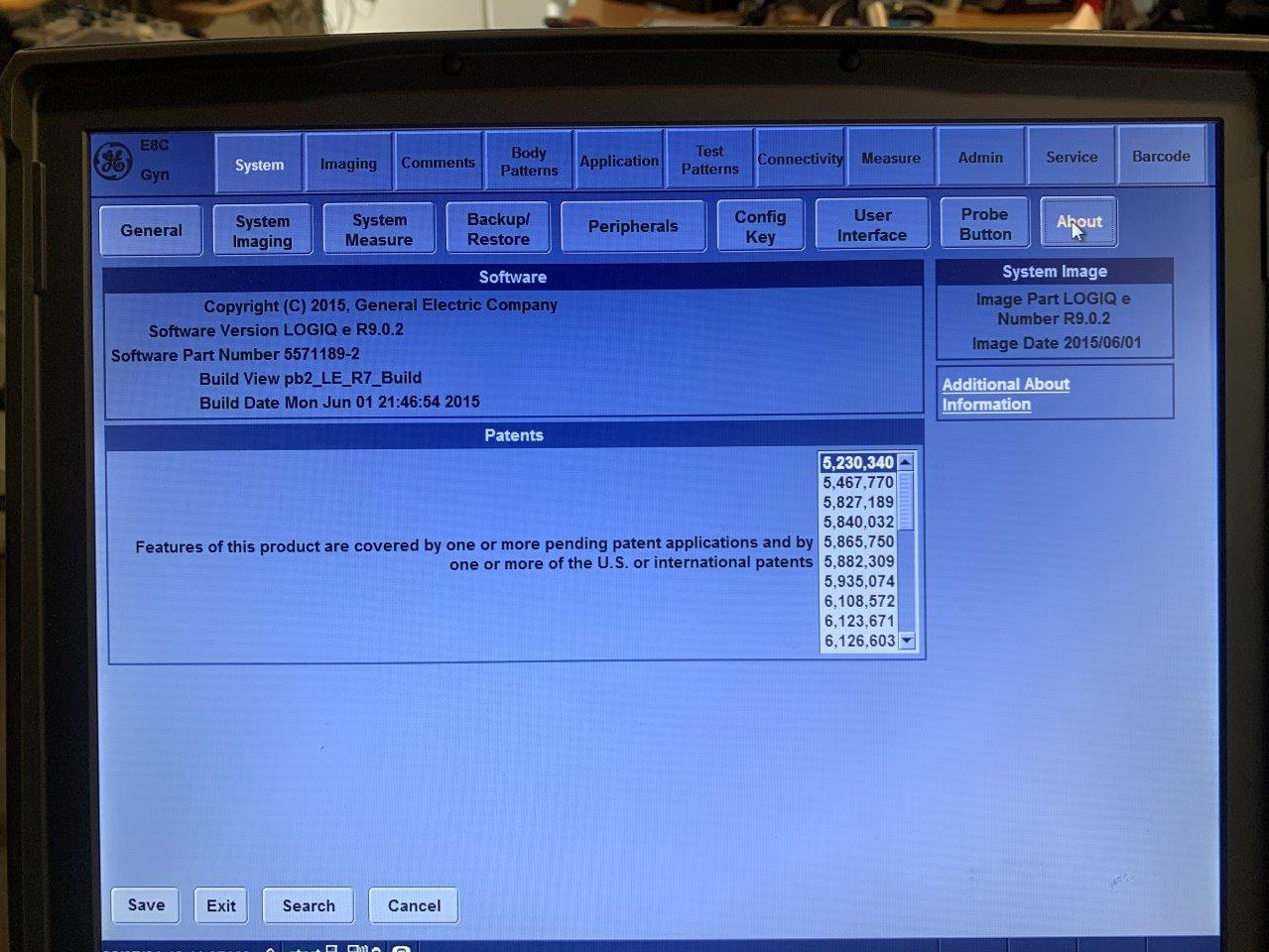 Échographe GE Logiq e d’occasion Fabriqué : octobre 2015 Lieu : Australie (EX2390) Version du logiciel : R9.0.2 Options installées : DICOM, LogiqView, aiguille Choix des sondes : C1-5-RS, 12L-RS, 3Sc-RS