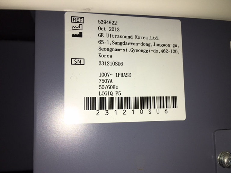 GE Logiq P5 d’occasion Lieu : Australie (U3075) Fabriqué : Oct 2013 Version du logiciel : R4.0.6 Options installées : Basic, Anatomical M, Cross Beam, SRI, Auto Sondes IMT : 5Sp, 8C, 11L