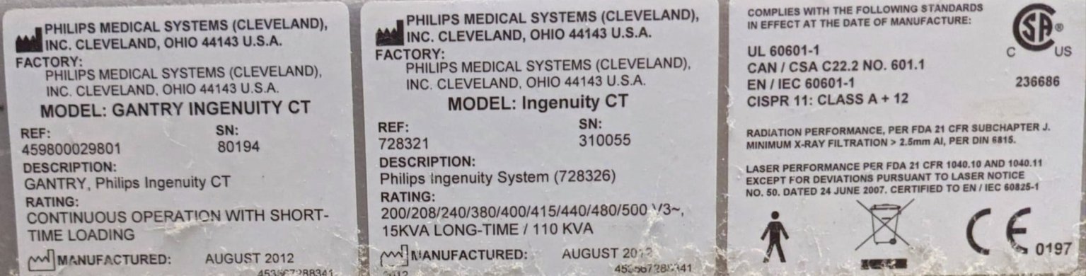 Scanner CT 128 coupes Philips Ingenuity Fabriqué : 2012 Emplacement actuel : Australie (EX2490) Tube – Original