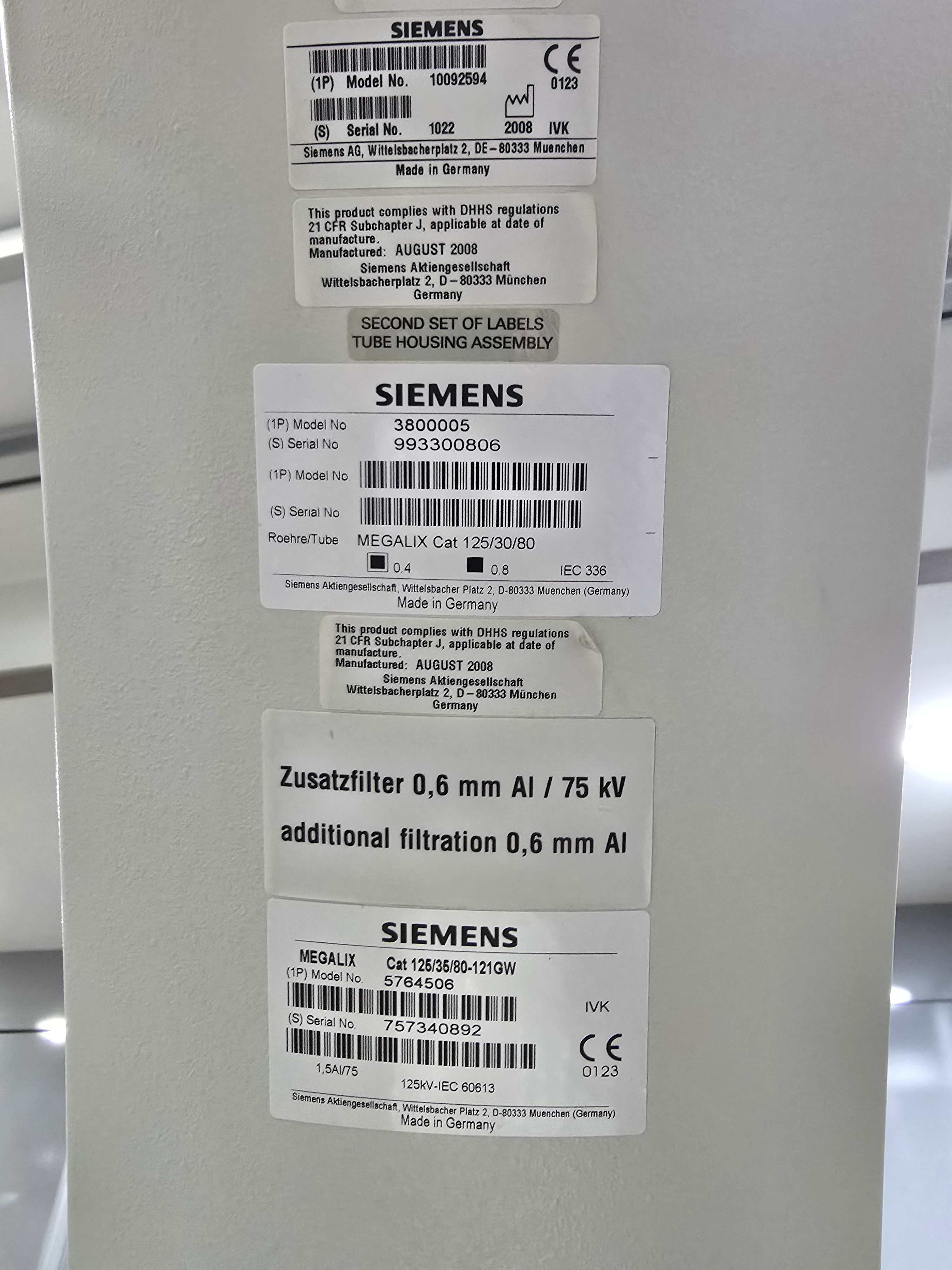 | Tubes Manufactured | : | 2022 and 2008 |
