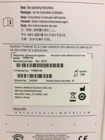 Used Siemens X300 ultrasound Manufactured: 2012 Current location: USA (EXA170427) S/W ver: 7.0.02 Probes: VF10-5/P5-1