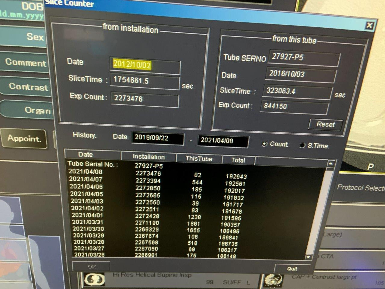 Nombre de tranches le 8 avril 2021 : 804,327 (voir photo IMG8749 ) – 778,507 (Nombre de tranches à la date du changement de tube le 27 janvier 2021 voir photo IMG8791 )
