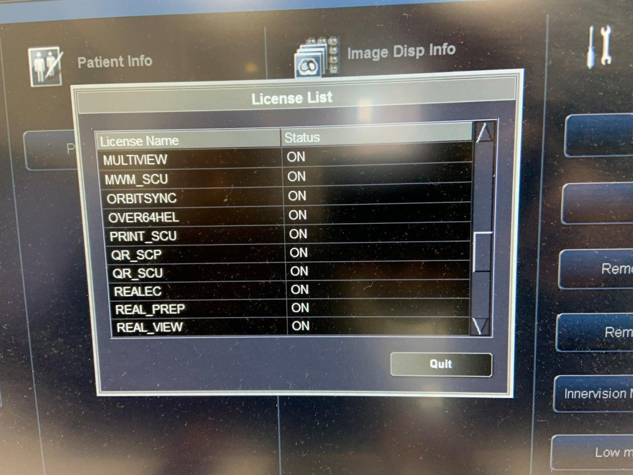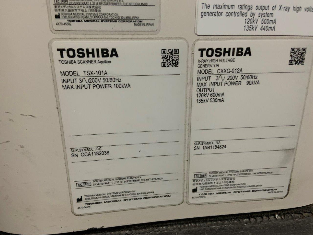 Toshiba Aquilion CXL 128 slice CT scanner – Avec tube presque neuf Fabriqué : Août 2011 Logiciel ver : V6.0/ Base Ver : V11.2 Localisation : Australie (EX2848) Australie (EX2848) Nombre d’expositions actuelles : 27,595 Temps de coupe : 22,630.8 sec Dernier changement de tube : 17 janvier 2022 Type de tube : MCS-7078D/MegaCool CXB-750D (octobre 2021) Options installées : ALATO_3DVIEWER, ALATO_DENTAL, ALATO_MULTISLICECT, ALATO_STANDARD, CARDIAC, CARDIACPATCH, CARDIACRECON, CARDIAC_PROSPECTIVE, DCM_CDR, DIM_EXP, DOUBLESLICE, D_PRT_BW, D_PRT_COLOR, EHCT_SCP, EHCT_SCU, FLUROSCOPE, IMG500K, MULTIVIEW, MWM_SCU, ORBITSYNC, OVER64HEL, PRINT_SCU, QR_SCP, QR_SCU, REALEC, REAL_PREP, REAL_VIEW, REGISTTOOL, SCAN64ROW, SP_H72, SP_HSF, ST035SEC, STRG_SCU, TIFF, TSB_DVD, WINPRT