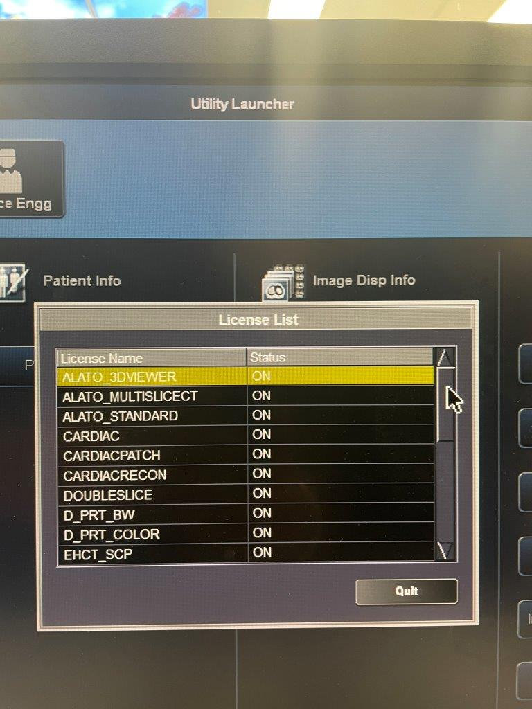 ALATO_3DVIEWER, ALATO_MULTISLICECT, ALATO_STANDARD, CARDIAQUE, CARDIACPATCH, CARDIACRECON, DOUBLE TRANCHE D_PRT_BW, D_PRT_COLOR, EHCT_SCP, EHCT_SCU, ORBITSYNC, OVER64HEL, PRINT_SCU, REALEC, REAL_PREP, REAL_VIEW, SCAN80ROW, STRG_SCU, TIFF, TSB_DVD, WINPRT