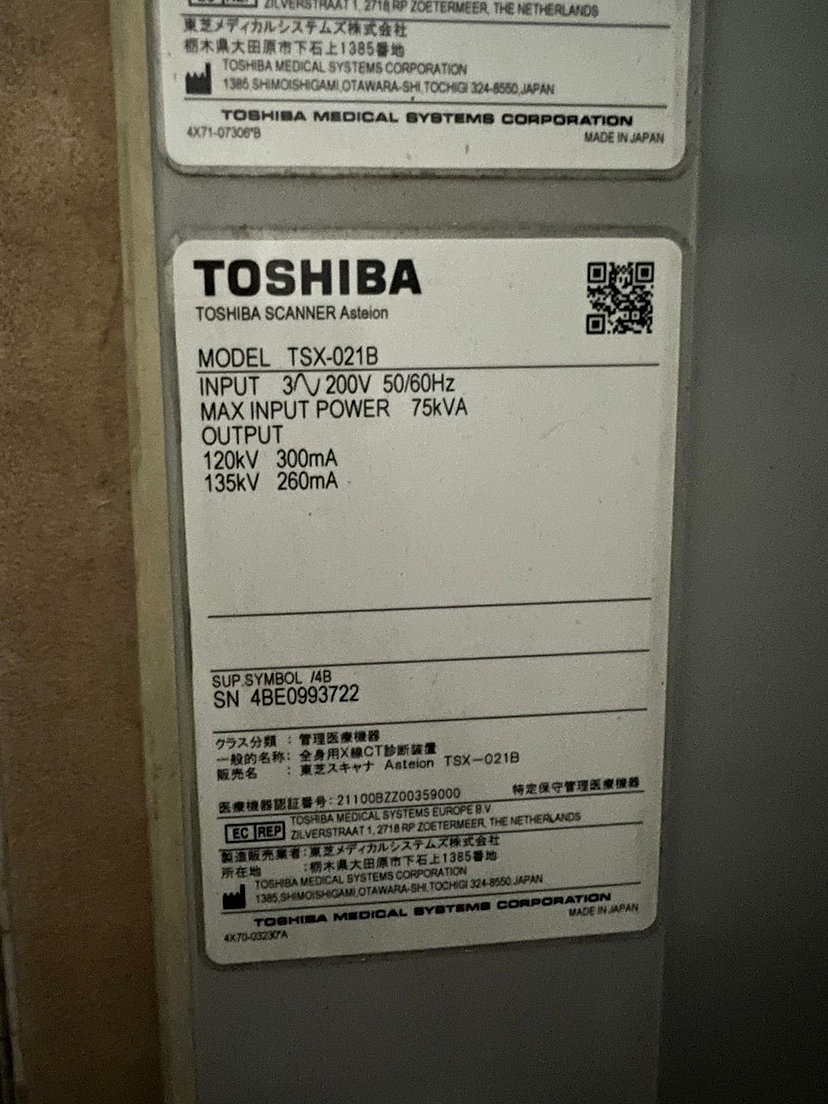 Toshiba Asteion S4 CT scanner with Good tube Manufactured: September 2009 Location: Japan (NEX137) Current Exposure count : 192,457] Slice time: 263,540.4 sec Last Tube change: 2017/01/25 Installed options: ALATO_3DVIEWER, ALATO_MULTISLICECT, ALATO_STANDARD, CBP, DCM_CDR, DIM_EXP, D_PRT_BW, D_PRT_COLOR, FAT_MEASURE, MULTIVIEW, PRINT_SCU, REALEC, REAL_PREP, REAL_VIEW, STRG_SCU, TIFF, TSB_DVD, WINPRT