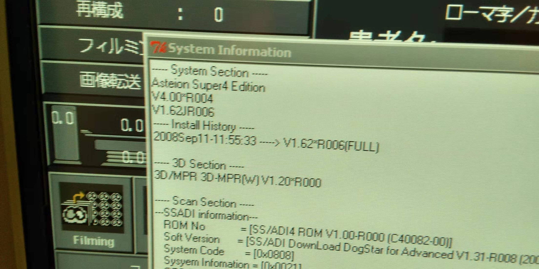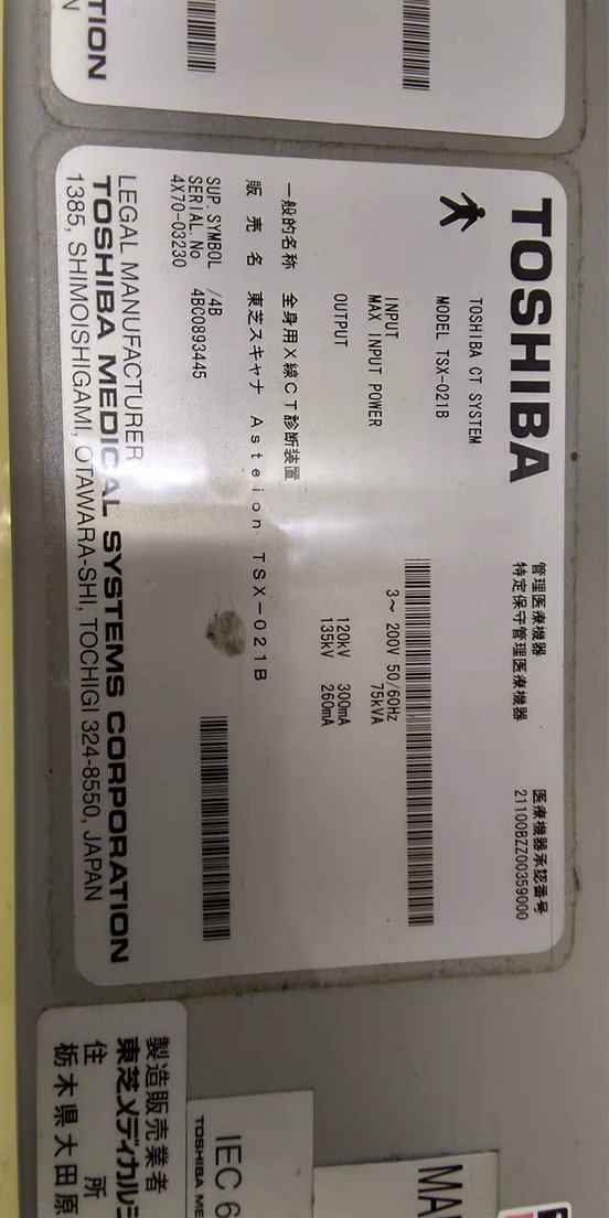 Toshiba Asteion Super 4 CT Scanner YOM : 2008 Location : Japon (NEX141) Numéro de série : 1EC0894105 Tube installé : Septembre 2008 Temps de coupe : 518 487 Nombre d’expositions : 444,376
