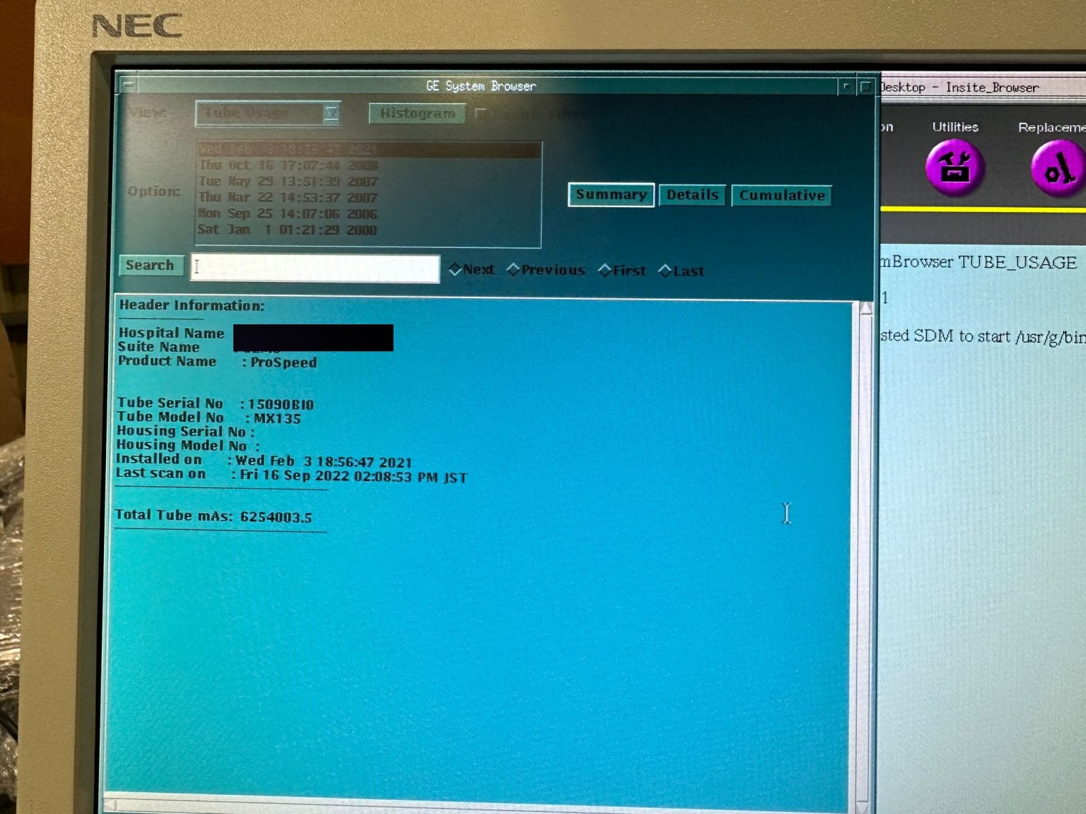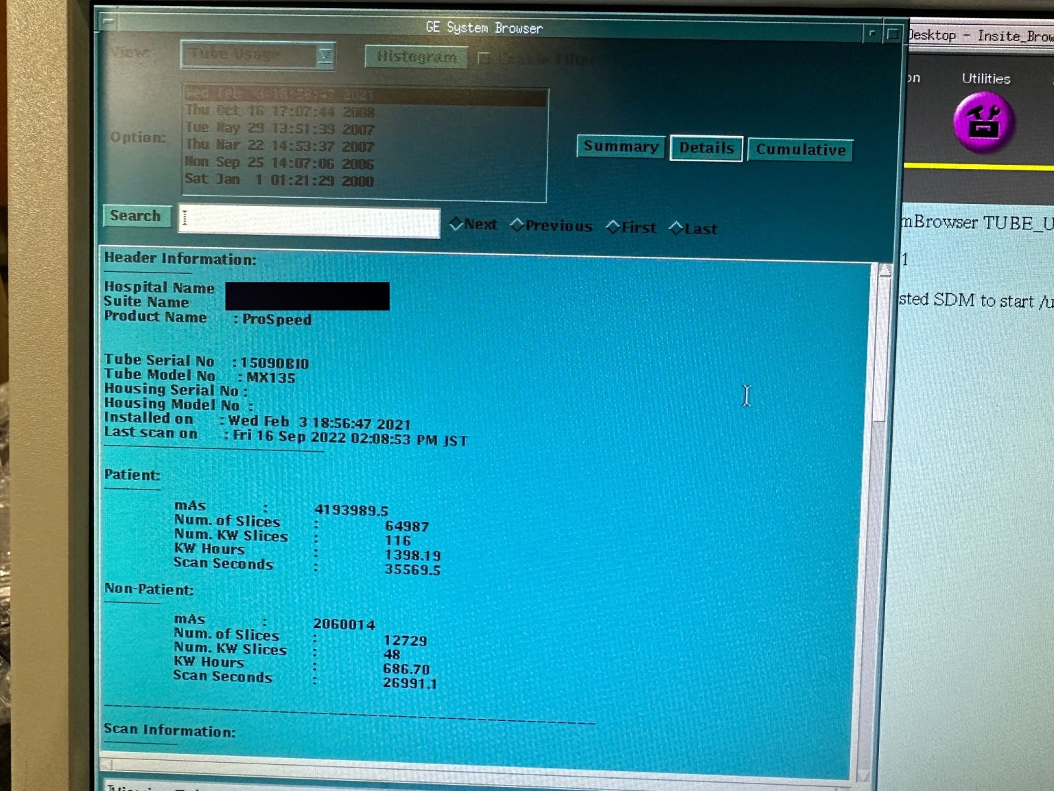 | Current Tube Usage | : | 6 million mAs (approx.) |
