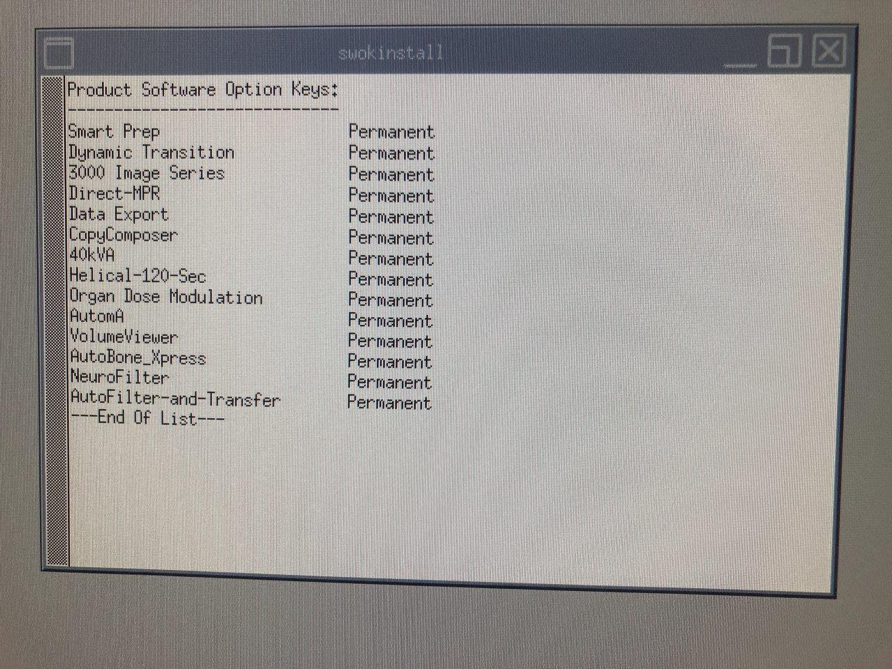 Options: Smart Prep, Dynamic Transition, 3000 Image Series, Direct-MPR Data Export, CopyComposer, 40kVA, Helical-120-Sec, Organ Dose Modulation, AutomA, VolumeViewer, Autobone_Xpress, NeuroFilter, AutoFilter-and-Transfer