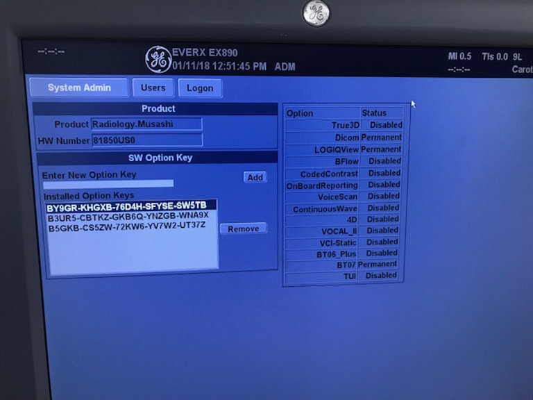 | Installed Options | : | DICOM, LOGIQView, BT_07 |