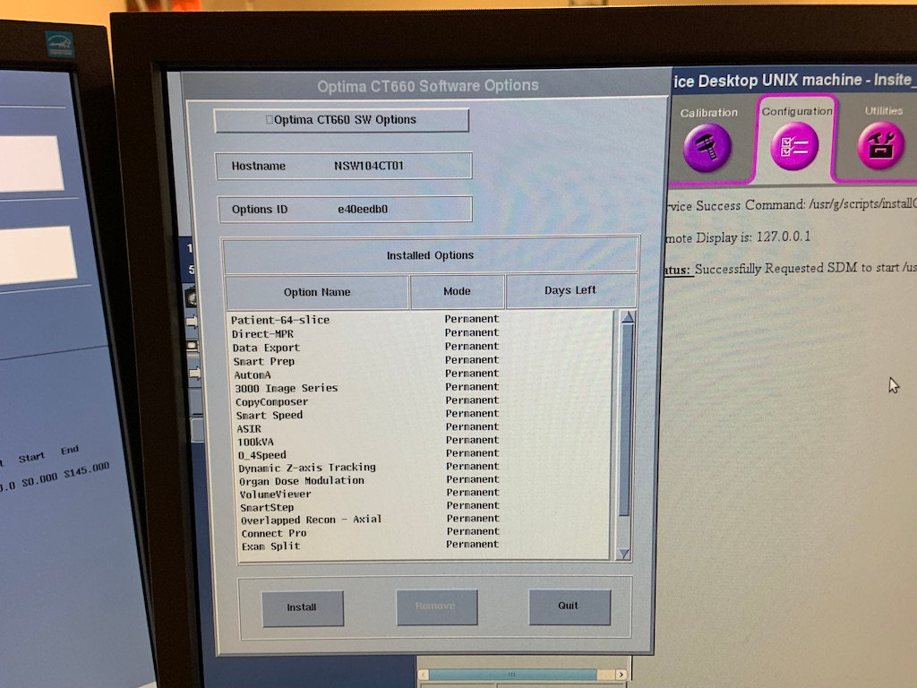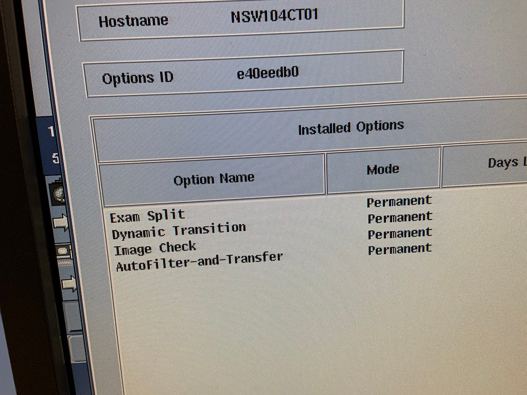 Options: Patient-64-slice, Direct-MPR, Data Export, Smart Prep, AutomA, 3000 Image Series, CopyComposer, Smart Speed, ASIR, 100kVA, 0_4Speed, Dynamic Z-axis Tracking, Organ Dose Modulation, VolumeViewer, SmartStep, Overlapped Recon-Axial, Connect Pro, Exam Split, Dynamic Transition, Image Check, AutoFilter-and-Transfer