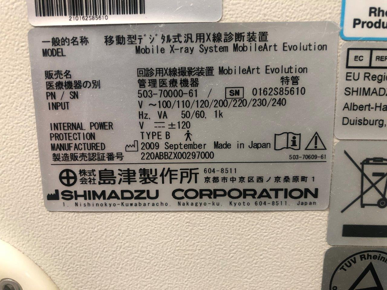 Used Shimadzu MobileArt Evolution mobile X-Ray machine
