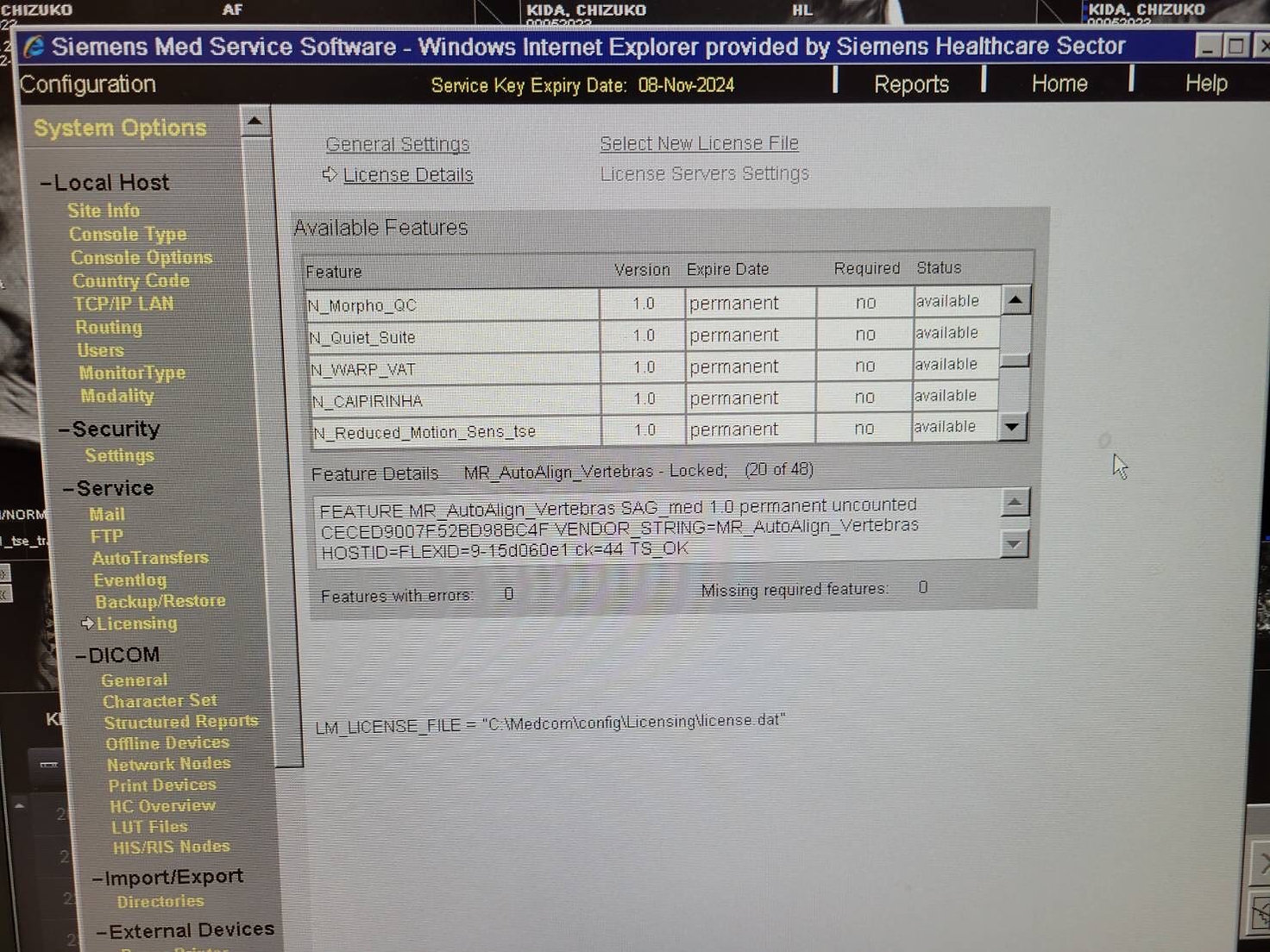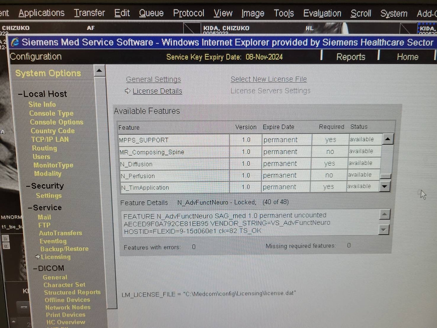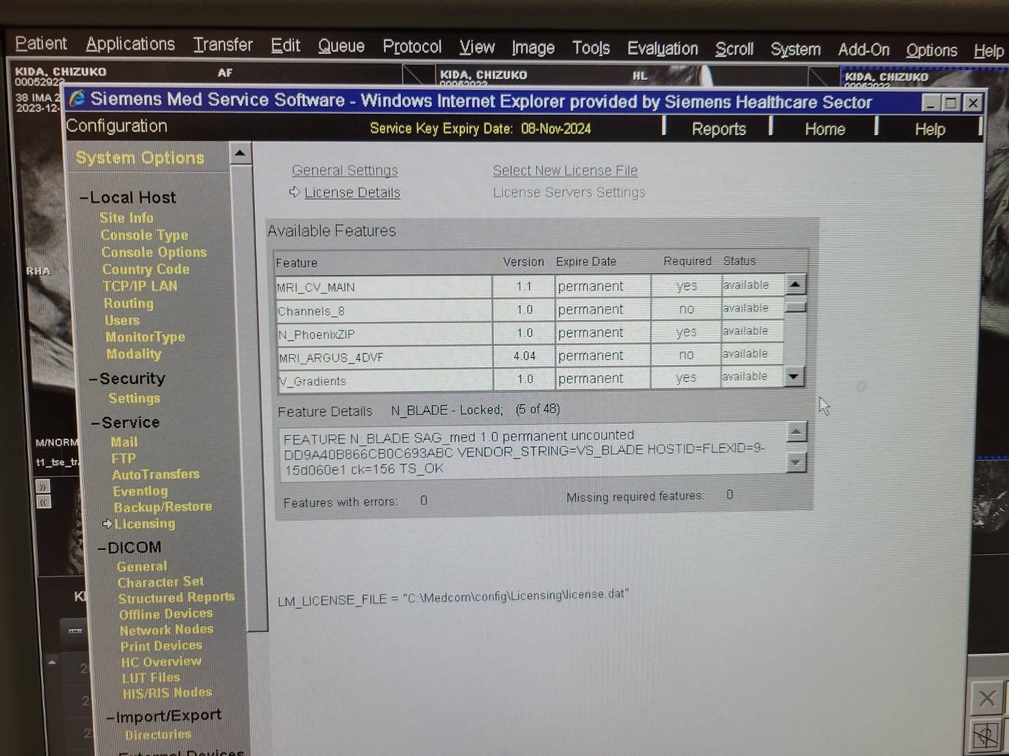Options: GET_WORKLIST, MRI_ARGUS_MAIN, MRI_ARGUS_VF_ANALYSIS, N_RoW, N11FlowQuant, N11TGSE, CAP3D_FILTER_MIP, CAP3D_FILTER_SSD, CAP3D_VOIMODE, CAP3D_MAIN, MR_AutoAlign_Head_LS, MR_Support_i, N_WF_Brain, N_WF_Basic, MR_Neuro_Local_AIF, MR_Neuro_Local_AIF_offline, MR_MotionCorrection_NR, N_WF_Spine, MR_AutoAlign_Spine_LS, MR_AutoAlign_Vertebras, N_Morpho_QC, N_Quiet_Suite, N_WARP_VAT, N_CAIPIRNHA, N_Reduced_Motion_Sens_tse, MRI_CV_MAIN, Channels_8, N_PhoenixZip, MRI_ARGUS_4DVF, V_Gradients, MR_DIS3D, N_InlineComposing, N_Stepping, N_InlineDIS3D, N_BLADE, MR_AdvNeuroPerfEval_Pro, MR_AdvNeuroPerfEval, MRI_ARGUS_FLOW_ANALYSIS, N_PAT_Advanced, N_AdvFunctNeuro, N_Perfusion, N_TimApplication, N_MatrixMode, N11Adv3D, SYNGO_GENERAL_LICENSE, MPPS_SUPPORT, MR_Composing_Spine, N_Diffusion, N_Perfusion, N_TimApplication