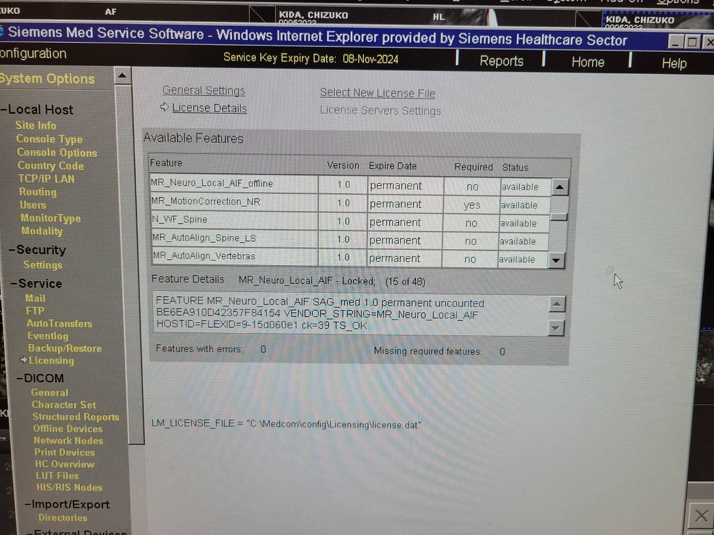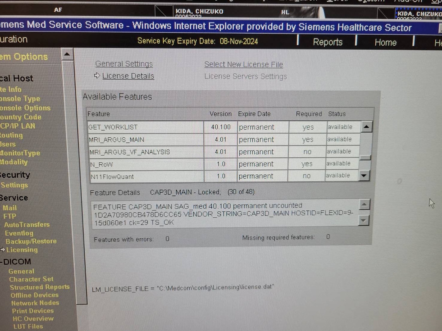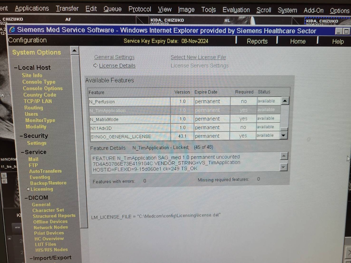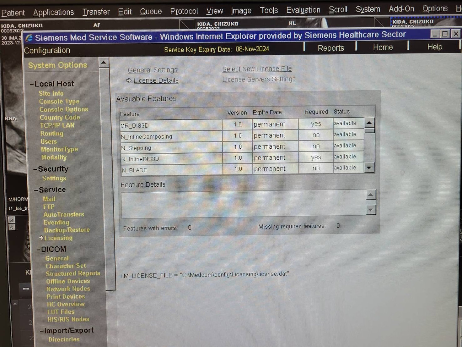 Options: GET_WORKLIST, MRI_ARGUS_MAIN, MRI_ARGUS_VF_ANALYSIS, N_RoW, N11FlowQuant, N11TGSE, CAP3D_FILTER_MIP, CAP3D_FILTER_SSD, CAP3D_VOIMODE, CAP3D_MAIN, MR_AutoAlign_Head_LS, MR_Support_i, N_WF_Brain, N_WF_Basic, MR_Neuro_Local_AIF, MR_Neuro_Local_AIF_offline, MR_MotionCorrection_NR, N_WF_Spine, MR_AutoAlign_Spine_LS, MR_AutoAlign_Vertebras, N_Morpho_QC, N_Quiet_Suite, N_WARP_VAT, N_CAIPIRNHA, N_Reduced_Motion_Sens_tse, MRI_CV_MAIN, Channels_8, N_PhoenixZip, MRI_ARGUS_4DVF, V_Gradients, MR_DIS3D, N_InlineComposing, N_Stepping, N_InlineDIS3D, N_BLADE, MR_AdvNeuroPerfEval_Pro, MR_AdvNeuroPerfEval, MRI_ARGUS_FLOW_ANALYSIS, N_PAT_Advanced, N_AdvFunctNeuro, N_Perfusion, N_TimApplication, N_MatrixMode, N11Adv3D, SYNGO_GENERAL_LICENSE, MPPS_SUPPORT, MR_Composing_Spine, N_Diffusion, N_Perfusion, N_TimApplication