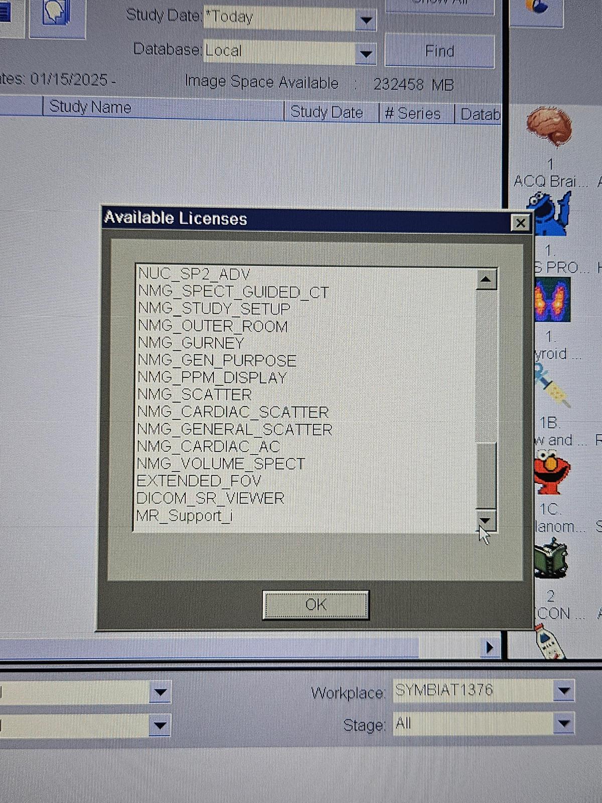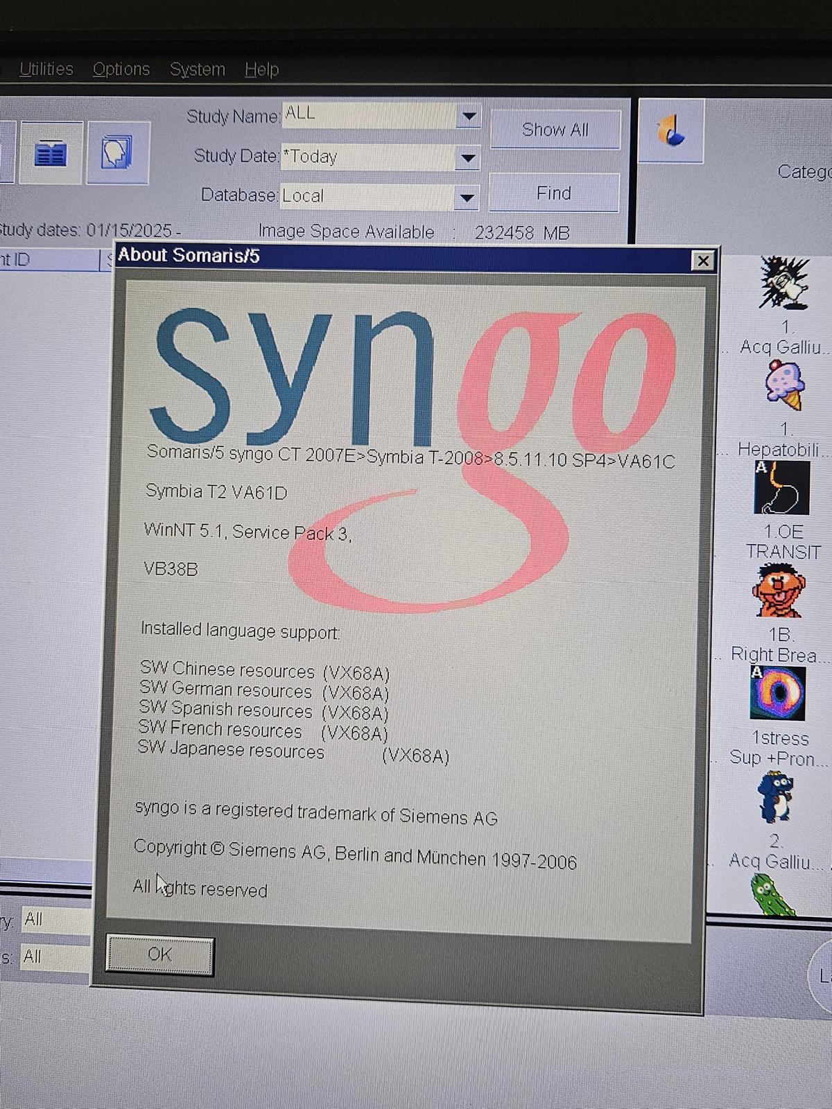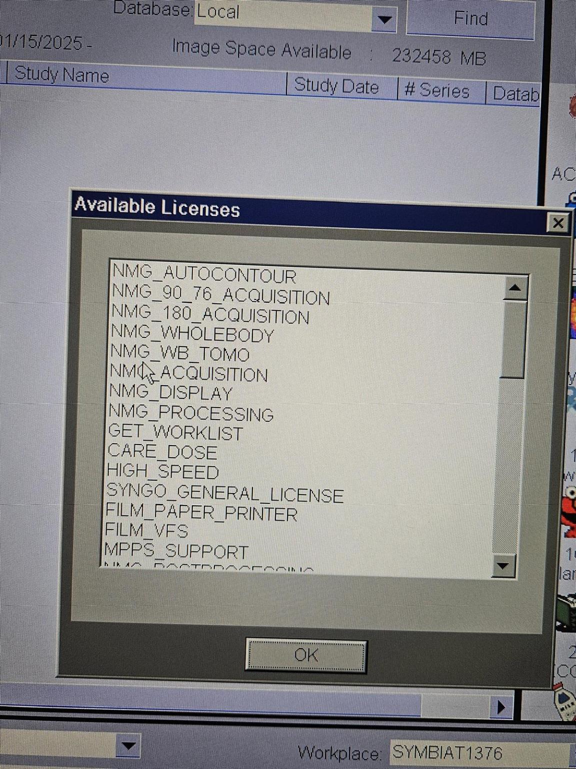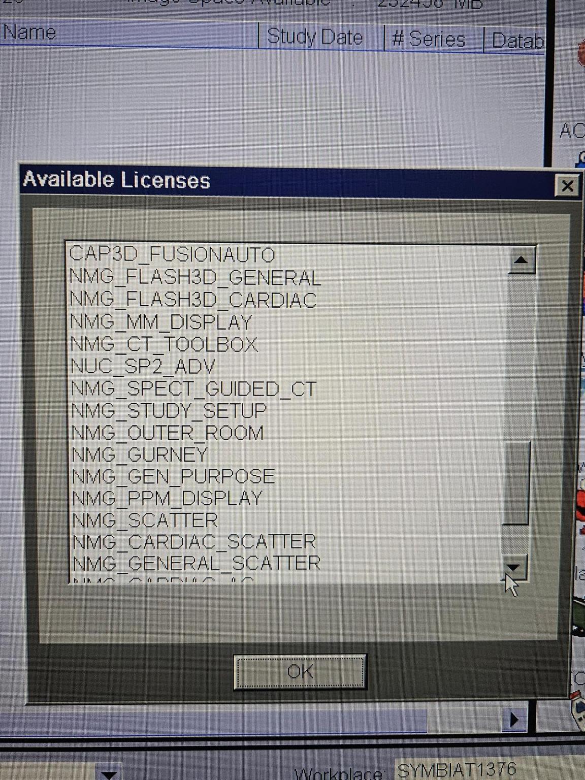 NMG_AUTGOCONTOUR, NMG_90_76_ACQUISTION, NMG_180_ACQUISITION, NMG_WHOLEBODY, NMG_WB_TOMO, NMG_ACQUISITION, NMG_DISPLAY, NMG_PROCESSING, GET_WORKLIST, CARE_DOSE, HIGH_SPEED, SYNGO_GENERAL_LICENSE, FILM_PAPER_PRINTER, FILM_VFS, MPPS_SUPPORT, NMG_POSTPROCESSING, CAP3D_MAIN, CAP3D_VOIMODE, CAP3D_FILTER_SSD, CAP3D_FILTER_MIP, CAP3D_EDITOR, CAP3D_FUSIONBASE, CAP3D_FUSIONLM, NMG_CARDIAC_PROCESSING, NMG_FUSION, EXTENDED_SPIRAL, RTD, HIGH_POWER, NMG_ATTENTUATION_CORRECTION, CAP3D_FUSIONAUTO, NMG_FLASH3D_GENERAL, NMG_FLASH3D_CARDIAC, NMG_MM_DISPLAY, NMG_CT_TOOLBOX, NUC_SP2_ADV, NMG_SPECT_GUIDED_CT, NMG_STUDY_SETUP, NMG_OUTER_ROOM, NMG_GURNEY, NMG_GEN_PURPOSE, NMG_PPM_DISPLAY, NMG_SCATTER, NMG_CARDIAC_SCATTER, NMG_GENERAL_SCATTER, NMG_CARDIAC_AC, NMG_VOLUME_SPECT, EXTENDED_FOV, DICOR_SR_VIEWER, MR_Support_i |