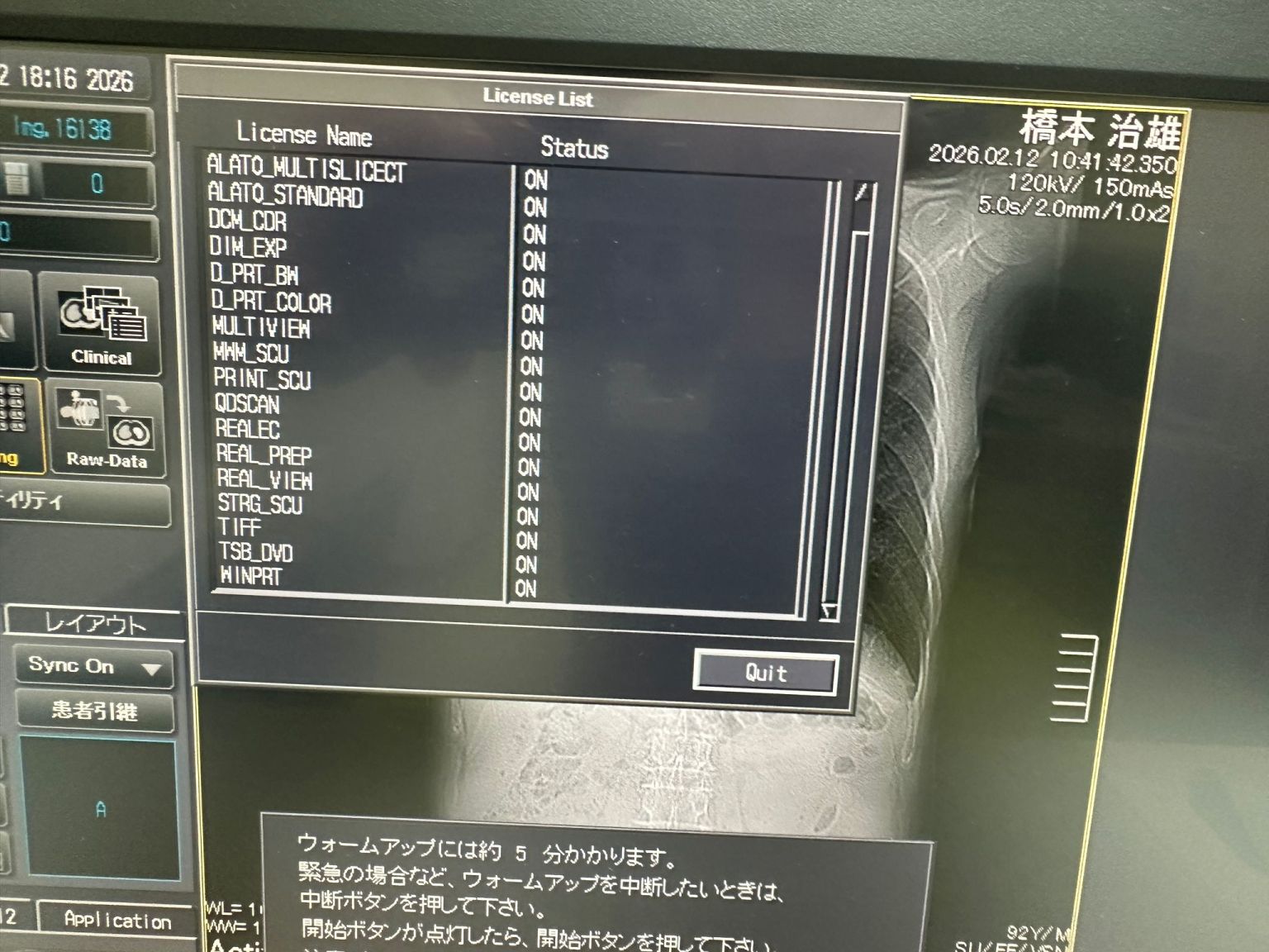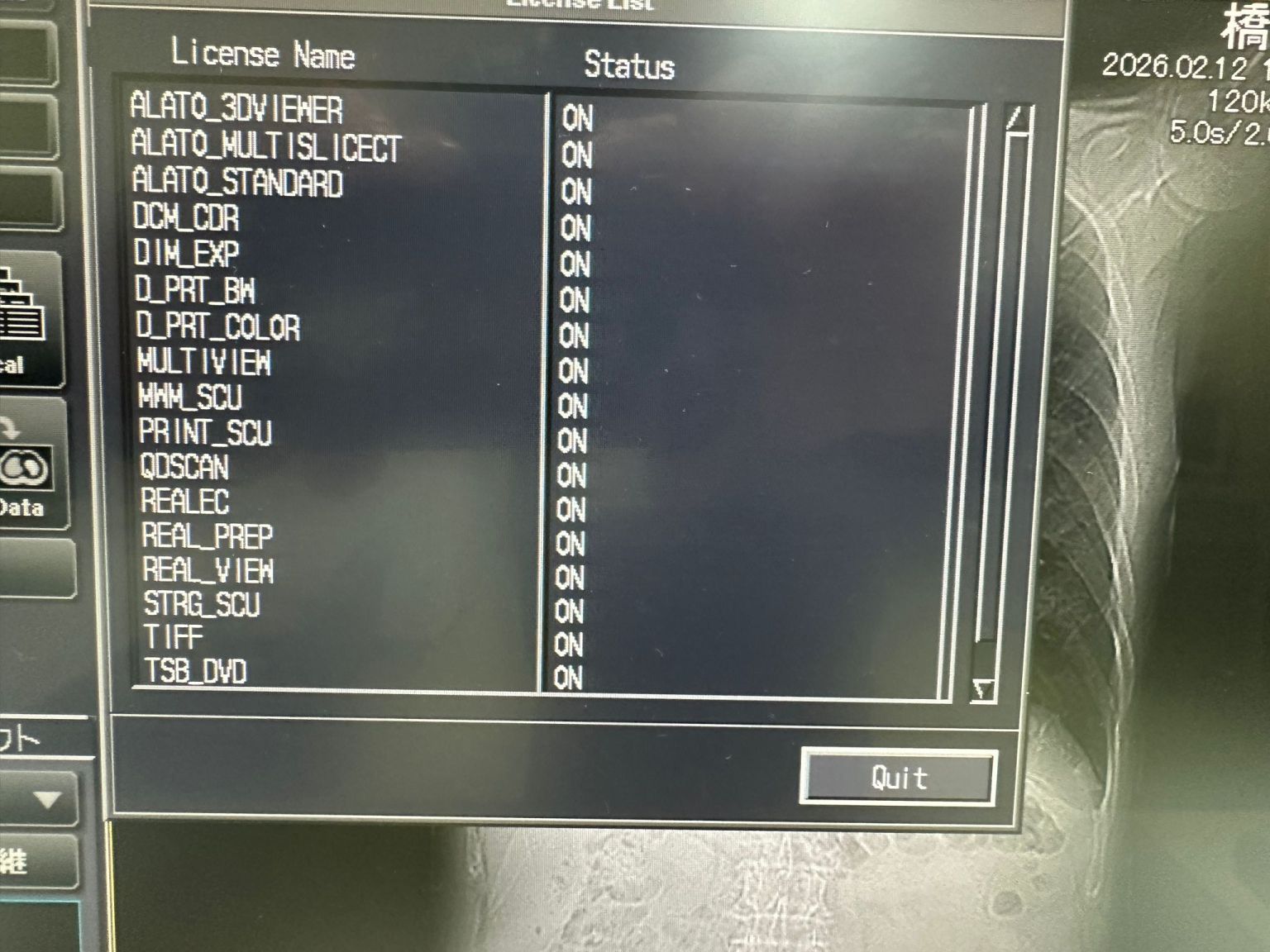 | Installed Options | : | ALATO_3DVIEWER, ALATO_MULTISLICECT, ALATO_STANDARD, DCM_CDR, DIM_EXP, D_PRT_BW, D_PRT_COLOR, MULTIVIEW, MWM_SCU, PRINT_SCU, QDSCAN, REALEC, REAL_PREP, REAL_VIEW, STRG_SCU, TIFF, TSB_DVD, WINPRT |